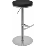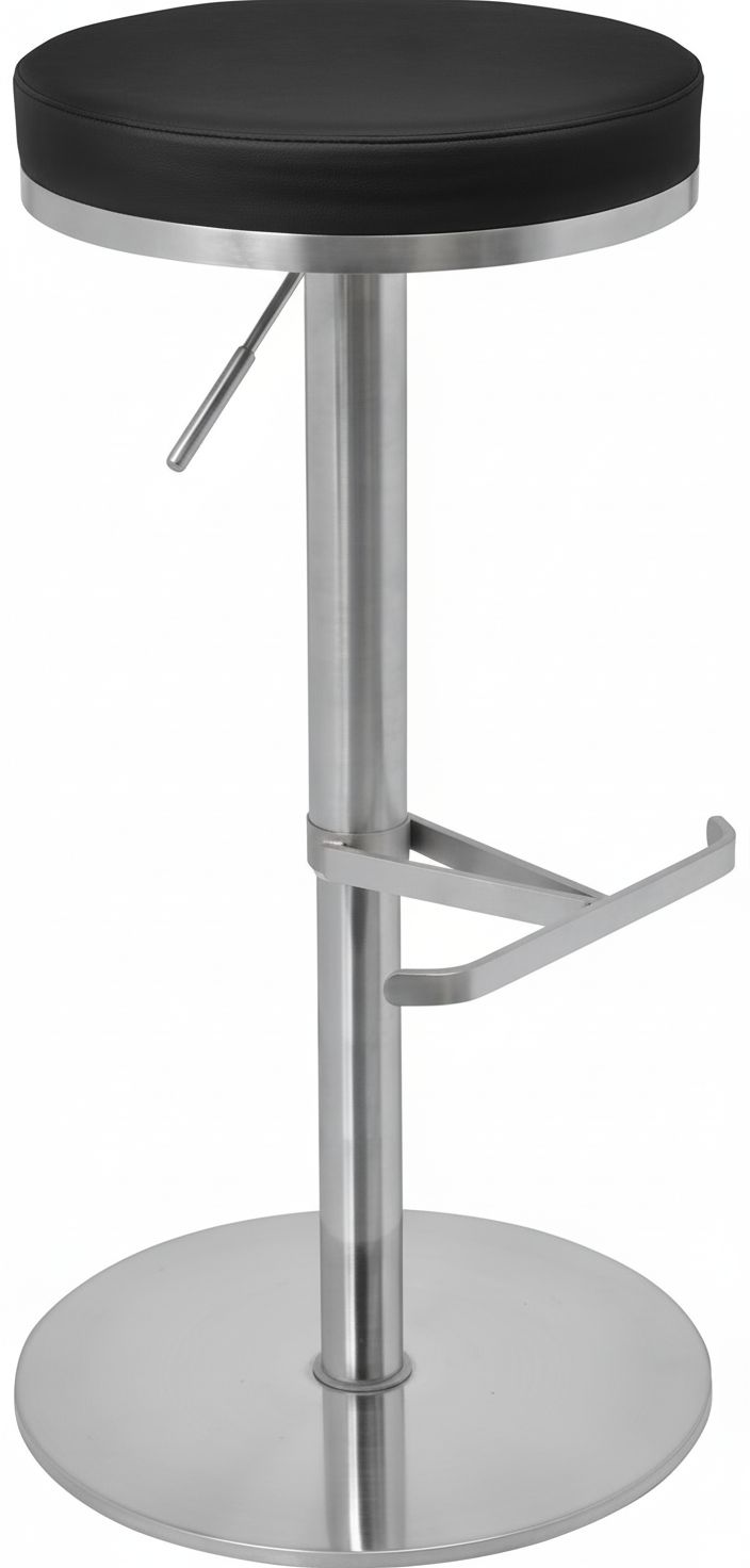 The Barrir Satin Steel Breakfast Bar Stool features a premium brushed steel finish and padded faux leather seat. Includes 360-degree swivel and adjustable height (55-80cm). Available in black or grey. Base diameter: 38cm.