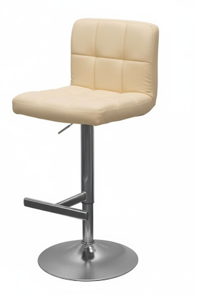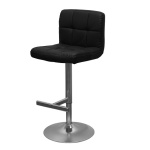 The Bartok Adjustable Brushed Chrome Bar Stool features a 360-degree swivel, gas lift mechanism, and soft faux-leather seat. Dimensions: Height 920-1130mm, Seat Width 450mm. Available in Black, Brown, Cream, and White.