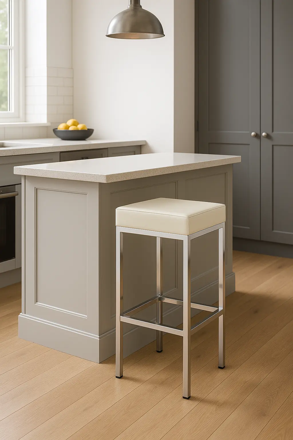 The Ernest bar stool features a PVC leather seat that wipes clean in seconds, making it perfect for busy households, families with children, or breakfast bars where spills happen. The chrome frame resists tarnishing and adds a bright, clean finish that pairs well with any modern kitchen or bar setting.