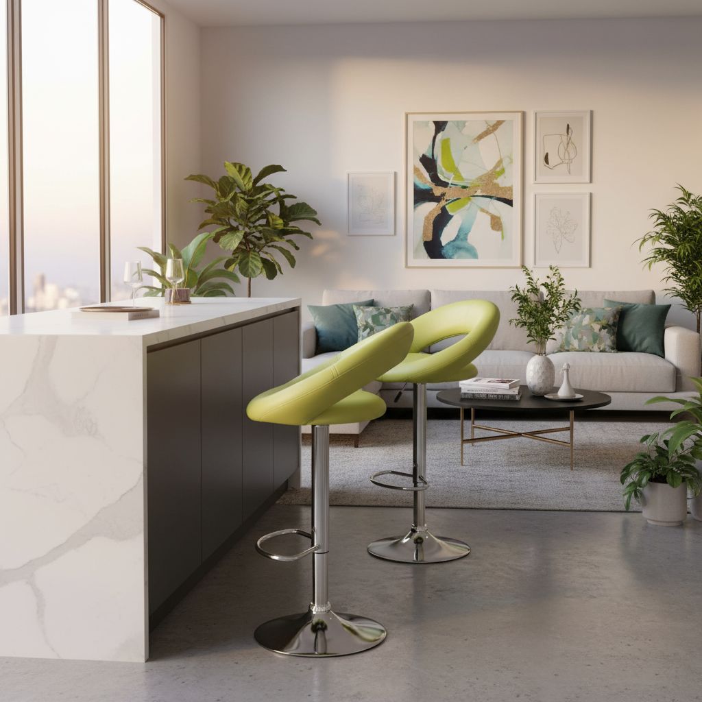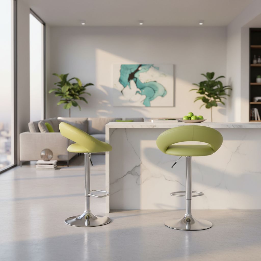 Furrai Lime Green Bar Stool with Chrome Base – Set of 2