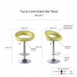 The Furrai Lime Green Bar Stool adds a vibrant splash of colour to any kitchen. Sold as a pair, these 550W x 480D x 800-1010H mm stools feature a leather-effect PVC finish and chrome frame. Includes a hydraulic gas lift and footrest.