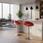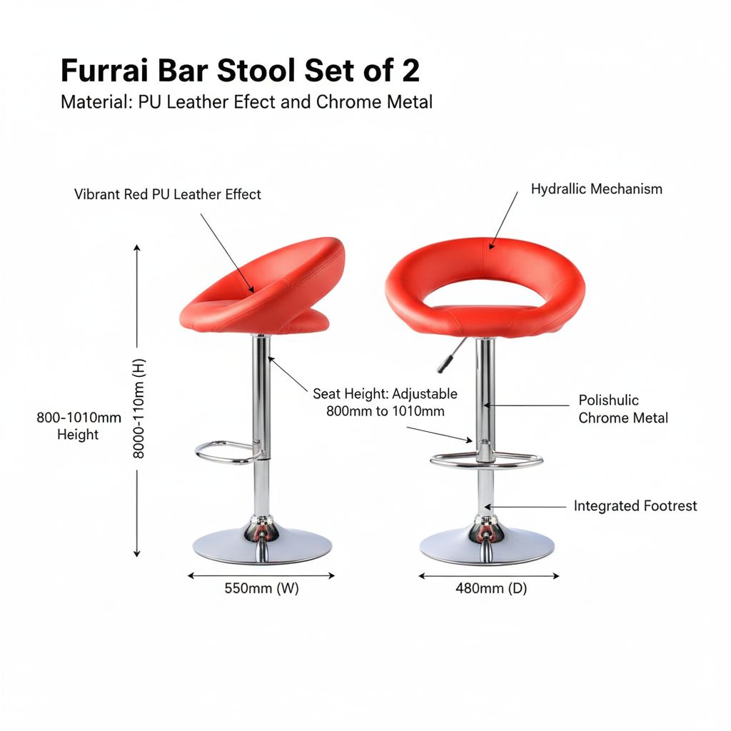 The Furrai Red PU Bar Stools are the perfect addition to any contemporary breakfast bar or home kitchen island. Sold as a convenient set of 2, these stools combine a bold aesthetic with high-end functionality. The vibrant red leather effect upholstery provides a striking pop of colour that complements the polished chrome base, ensuring your interior remains modern and stylish.