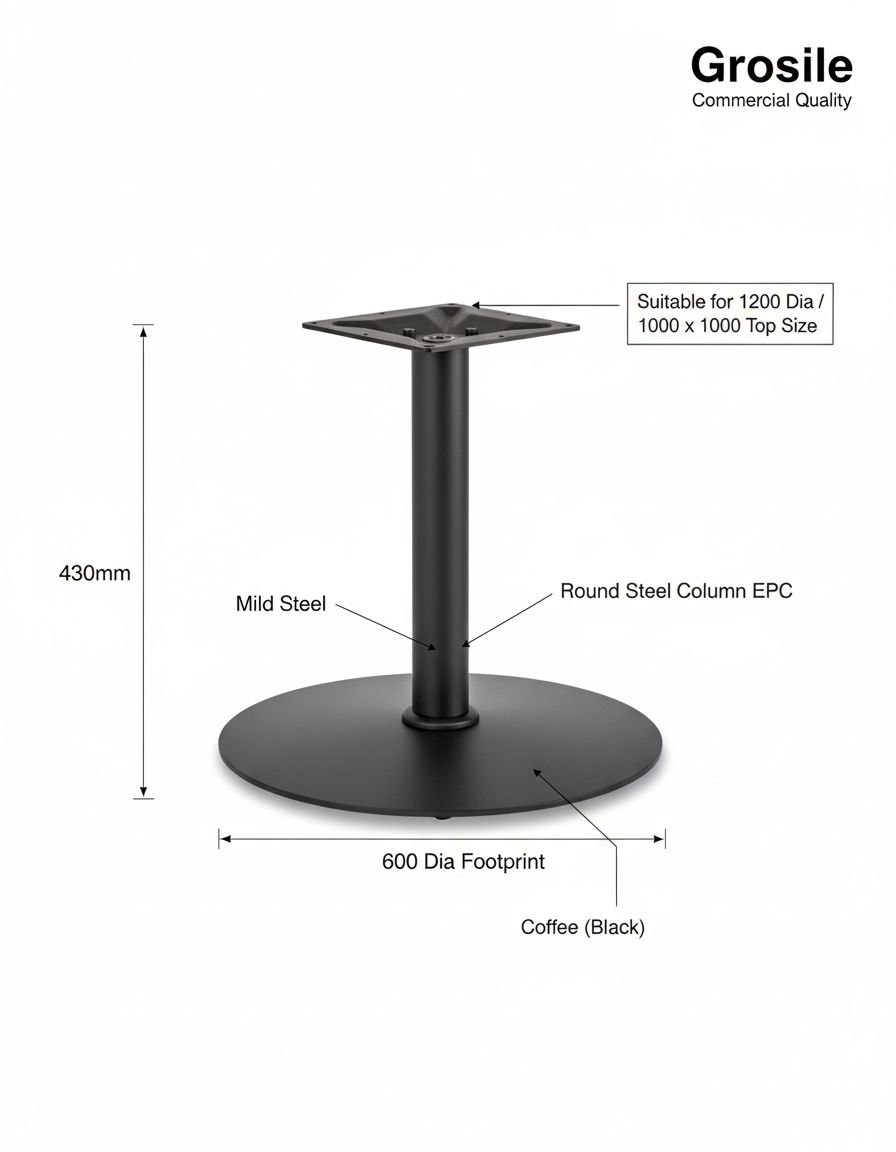 The Grosile Black Coffee Table Base is a premium structural solution designed for high-traffic hospitality environments. This large round base provides exceptional stability for substantial table tops, making it a reliable choice for cafes, lounges, and hotel reception areas. By focusing on a minimalist round tube design, this base fits seamlessly into modern UK interiors while offering the heavy-duty support required for commercial furniture.