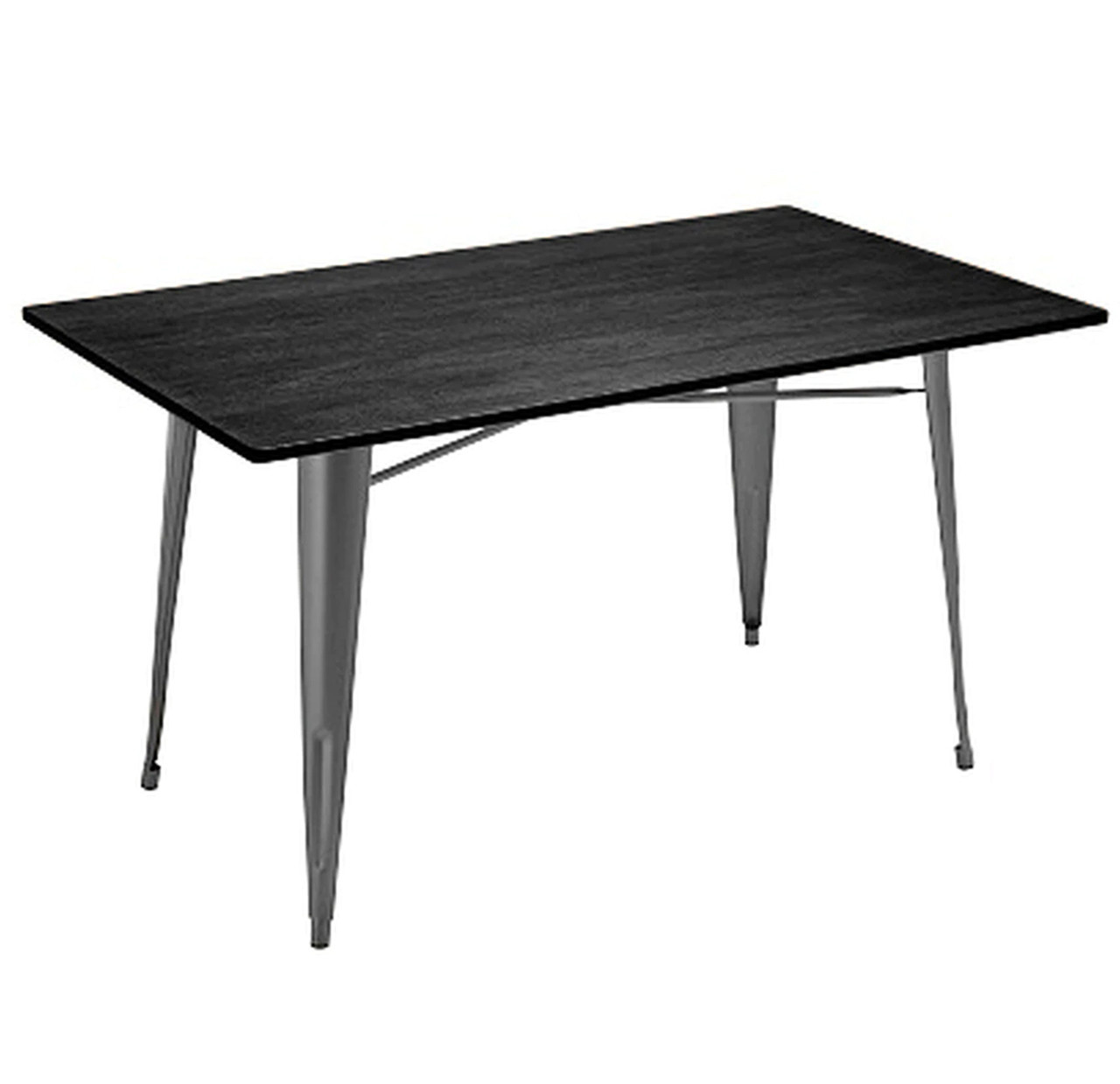 A gorgeous new darkwood Horizon table with a modern industrial look, featuring a dark grey wooden top and a stunning metal frame perfect for kitchens or commercial spaces.