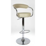 The Lazio cream adjustable bar stool features a padded backrest, 360-degree swivel seat, and smooth gas lift. Dimensions: W52cm x D48cm x H87-108cm. Available in multiple colours with a polished chrome finish.