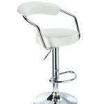The Lazio White Adjustable Bar Stool features a comfortable padded back rest, full 360 swivel, and smooth gas lift. Dimensions: W 52cm, D 48cm, H 87-108cm. Stylish chrome finish.