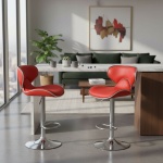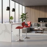 Crafted with durability in mind, each Red PU Bar Stool features high-quality PU material that mimics the look and feel of genuine leather while being remarkably easy to maintain. The chrome-plated pedestal base is not only stylish but also provides a sturdy foundation. The materials used ensure that these stools remain a long-lasting addition to your home, resisting the wear and tear of daily use while retaining their polished appearance.