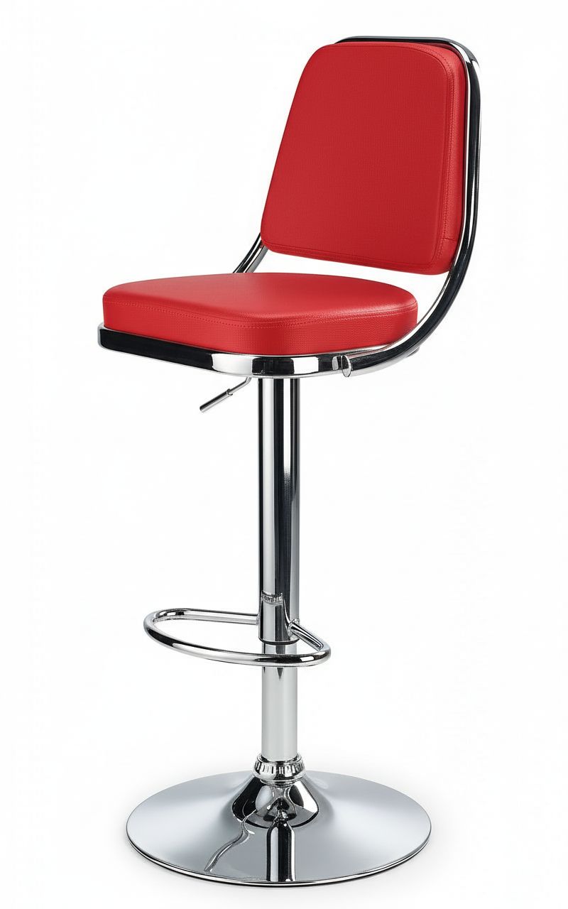Romano Bar Stool Red Faux Leather Height Adjustable with Backrest