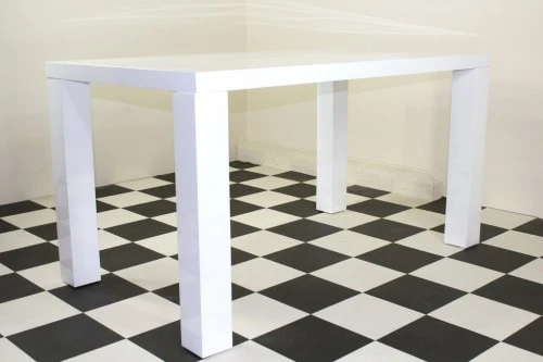 The sheraton rectangular diner table has a high gloss top and chunky high gloss legs.
