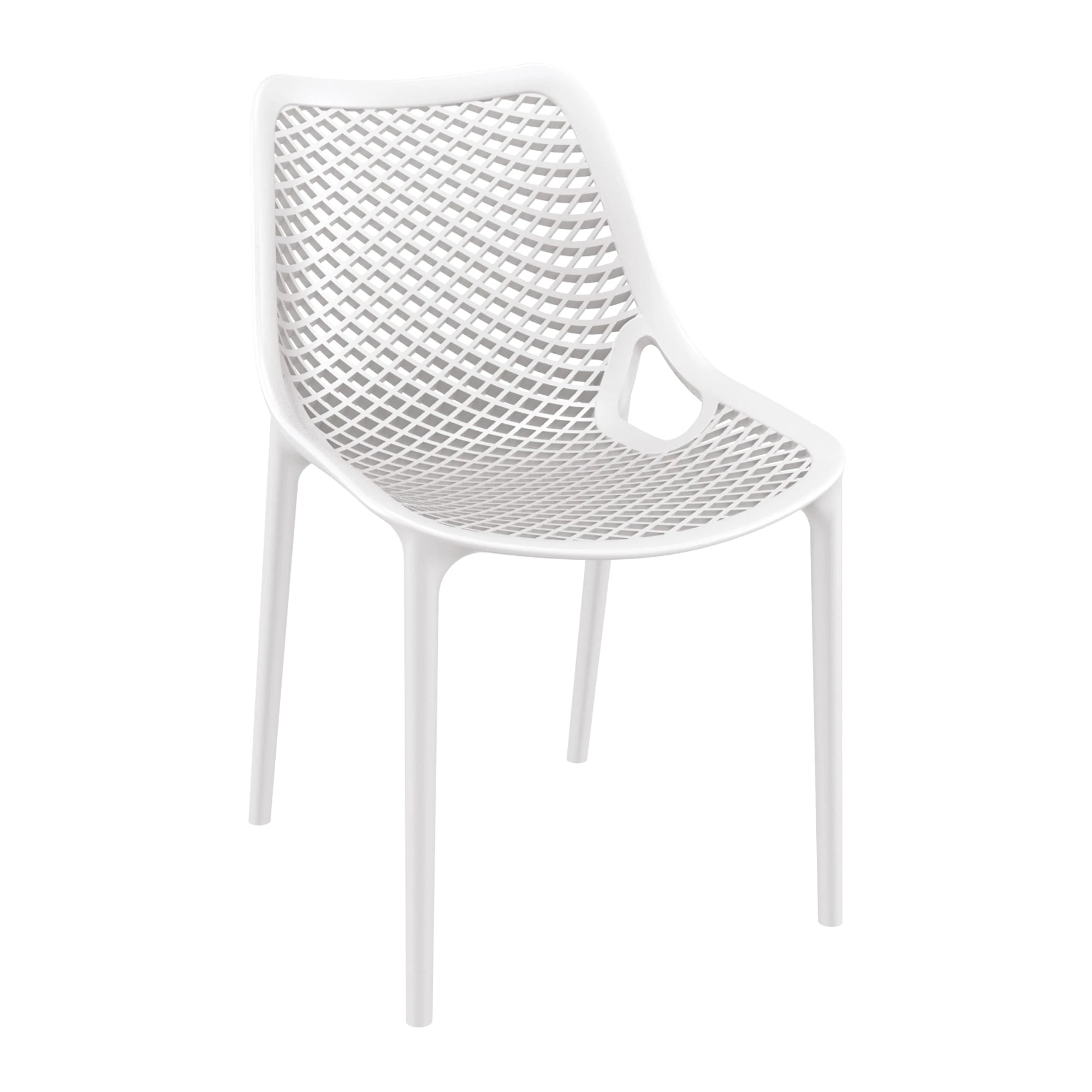 Polypropylene, glass fibre reinforced stacking side chair. Strong and stable. Ideal for outdoor use may also be used indoors if required