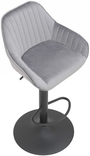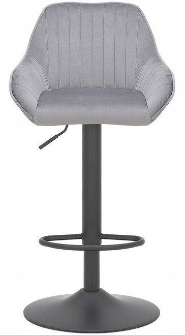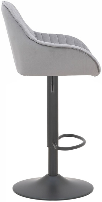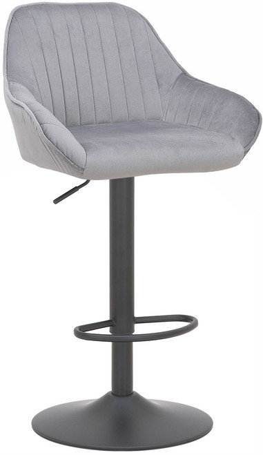 Velluto Velvet Bar Stool Grey with Adjustable Matt Black Frame